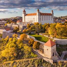Tu aventura empieza en Bratislava, la encantadora capital de Eslovaquia. Aquí, tu guía te lleva en un paseo relajado por el casco antiguo histórico y la zona del castillo, compartiendo historias que dan vida a la ciudad. Verás plazas elegantes, torres medievales y vistas panorámicas del Danubio. Más tarde, tendrás tiempo libre para disfrutar de la ciudad a tu propio ritmo, ya sea cenando, comprando o simplemente relajándote junto al río.