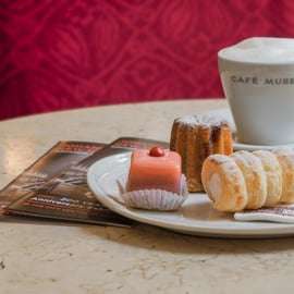 Para completar tu viaje cultural, al entrar recibirás un cupón para el emblemático Café Museum, situado a pocos pasos del museo. Conocido por su encanto histórico y frecuentado en su día por artistas como Gustav Klimt y Egon Schiele, el Café Museum ofrece el entorno perfecto para relajarse y reflexionar. Disfruta de un café vienés tradicional acompañado de tres delicias dulces seleccionadas, un capricho al más puro estilo vienés.