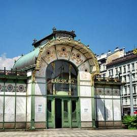 La siguiente parada de metro es la estación Kettenbrücke. Por el camino visitarás la famosa Casa de la Secesión, icono por excelencia del Jugendstil vienés. También verás dos hermosos edificios de apartamentos diseñados por Otto Wagner. Aprende más sobre la filosofía que hay detrás del Art Nouveau y reflexiona sobre los símbolos y materiales preferidos por sus practicantes. Desde la estación Kettenbrücke, súbete al metro para llegar a la última parada, donde visitarás la estación imperial. Este extraordinario edificio fue construido en las afueras de Schönbrunn para uso exclusivo del emperador. La joya de la corona de la línea, esta estación también tenía un significado simbólico, ya que pretendía mostrar a los detractores del metro de Viena que el emperador apoyaba la línea. Fíjate en los métodos utilizados por Wagner para traducir el estilo generalmente burgués del Art Nouveau en una estética con grandiosidad imperial.
