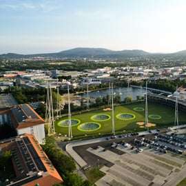 Con más de 30 000 m², Topgolf Viena ofrece una combinación única que promete una experiencia de ocio especial. En Topgolf, los juegos se combinan con una amplia oferta de comida y bebida, así como con tecnología avanzada. No se necesitan conocimientos previos. Al contrario: en Topgolf puedes empezar de inmediato. Esta innovadora oferta de ocio se encuentra a las afueras de Viena, en Brunn am Gebirge, muy cerca del centro comercial Shopping City Süd (SCS) y de la pirámide Vösendorf.