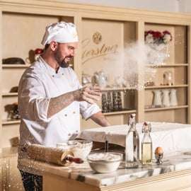 Adéntrate en sus históricos salones, donde la tradición repostera vienesa se mantiene viva. Asiste a un fascinante espectáculo dedicado al strudel, un verdadero deleite para los sentidos.