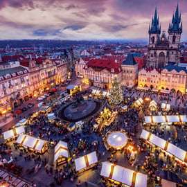 Desfruta de uma viagem festiva de um dia de Viena aos mercados de Natal de Praga, com transporte de e para o hotel. Explora a Cidade Velha de Praga, vê marcos famosos e mergulha na magia das luzes, da música e da alegria das festas.