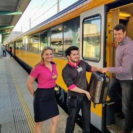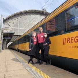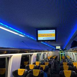 Descubra a comodidade de viajar entre Viena e Praga de trem com a RegioJet! Conforto e praticidade definem esta experiência ferroviária. Aproveite assentos relaxantes, Wi-Fi gratuito para se manter conectado, tomadas para carregar seus eletrônicos e banheiros limpos à disposição. E tem mais: leve sua bicicleta sem preocupações! Nossa equipe simpática está pronta para auxiliar em qualquer necessidade.