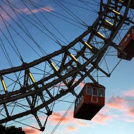 Para vistas de cortar a respiração, sobe a bordo da histórica Roda Gigante de Viena, onde as cabines espaçosas oferecem panorâmicas deslumbrantes do Rio Danúbio e do horizonte cintilante da cidade - perfeito para tirar fotografias memoráveis.