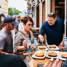 Em seguida, um dos mais famosos "fast-food" de Viena nos espera com uma variedade incrível de sanduíches saborosos, acompanhados por uma refrescante cerveja artesanal.